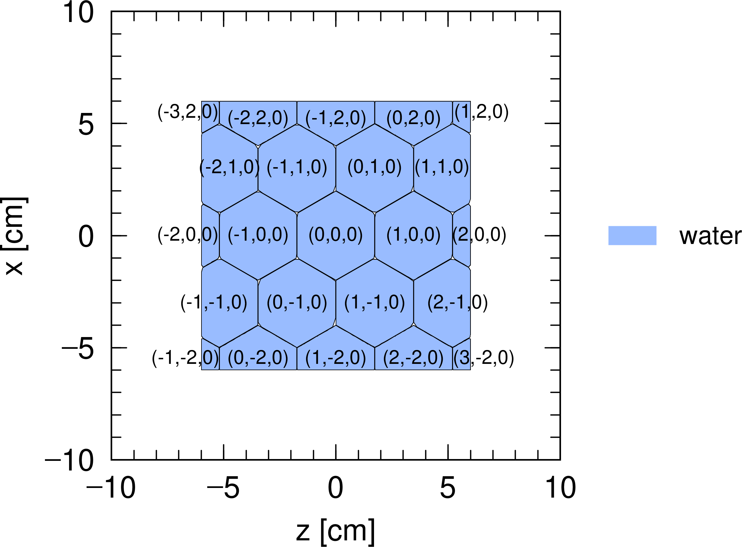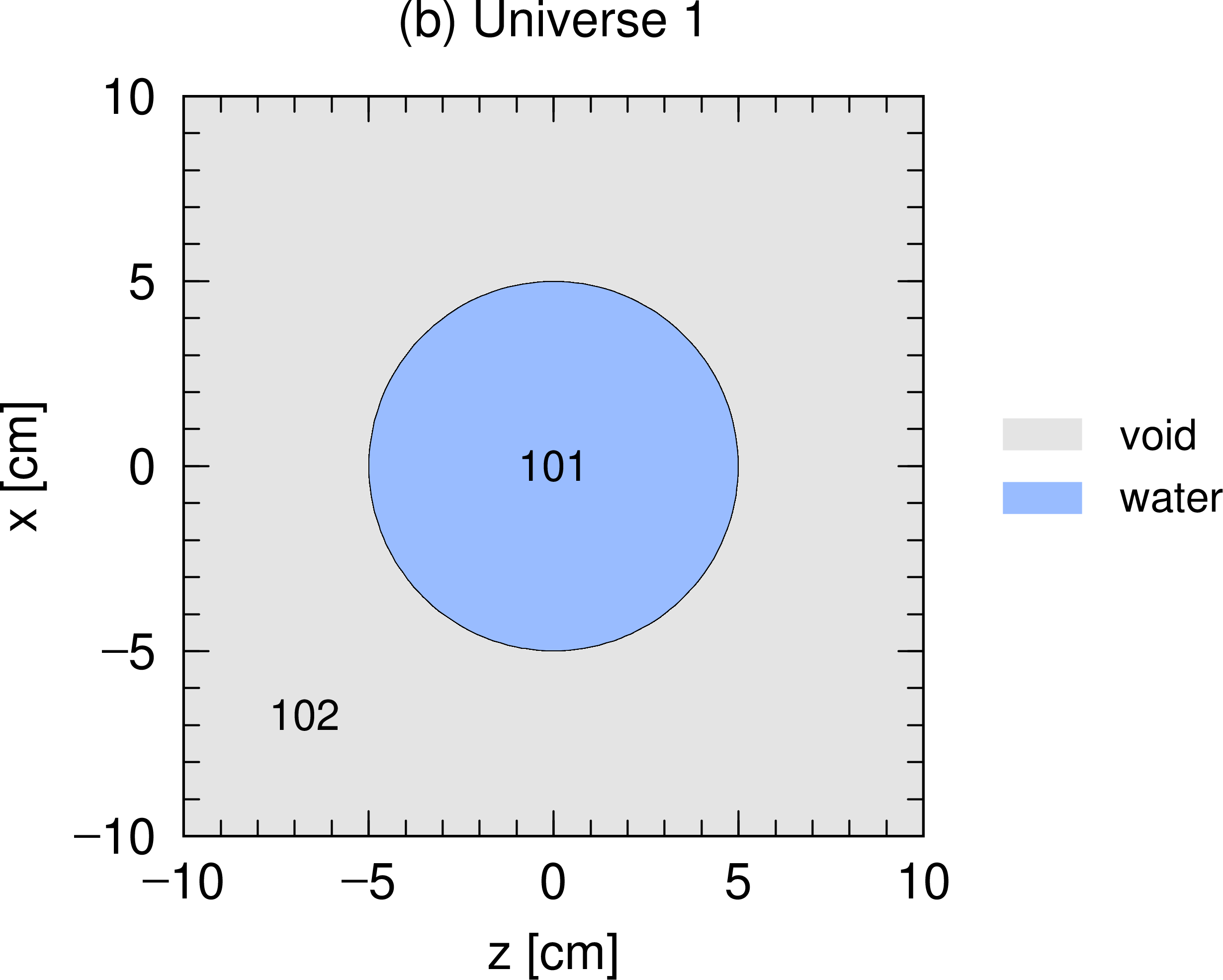 図 5.6.6 Universe構造の模式図 (2)。円柱内部に水を満たし、それ以外はボイドとした universe 1。¶