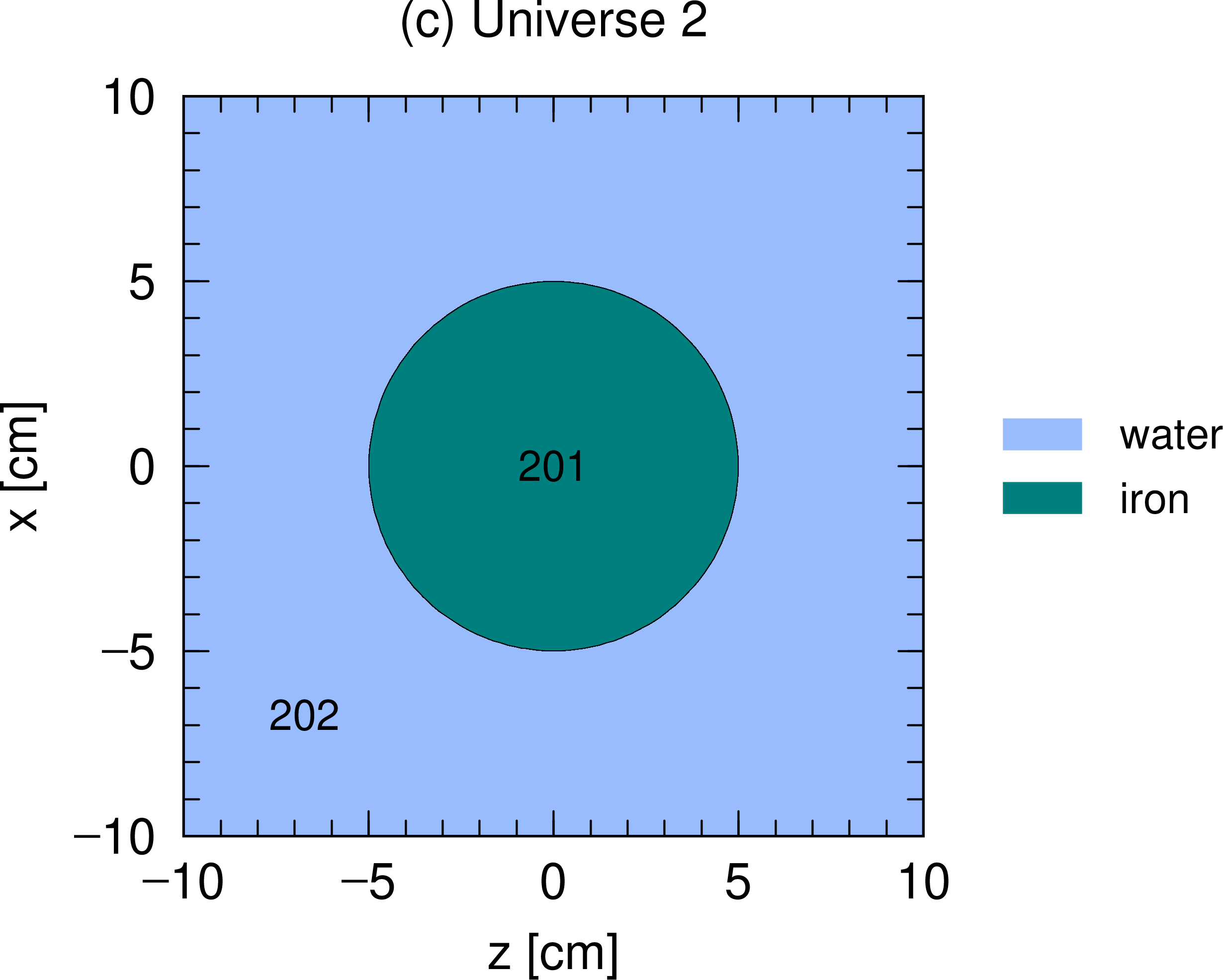 図 5.6.7 Universe構造の模式図 (3)。鉄の円柱の周りを水で満たした universe 2。¶