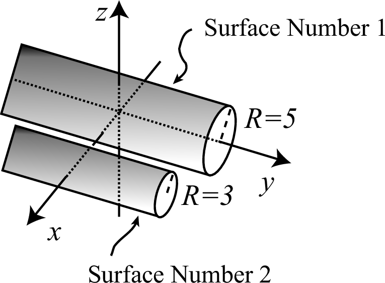 なお、上面の半径 \(R_2\) を0に設定した場合、自動的に \(R_2=1.0 \times 10^{-5}\) となります。 これは、 TRC を用いて頂点を持つ円錐面を定義できないためです。
