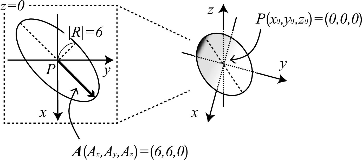 \((A_x,\ A_y,\ A_z)\) の始点に垂直な面 |