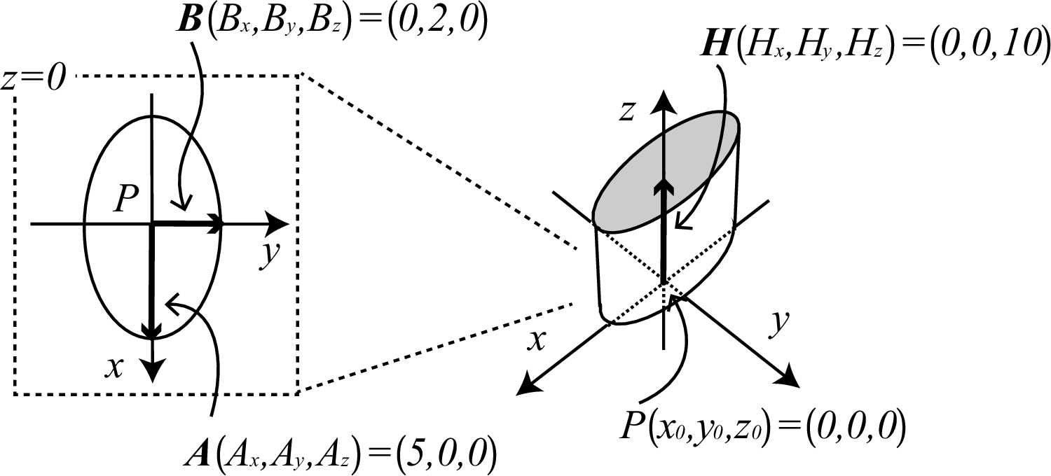 \((H_x,\ H_y,\ H_z)\) の始点に垂直な面 |